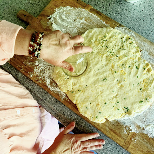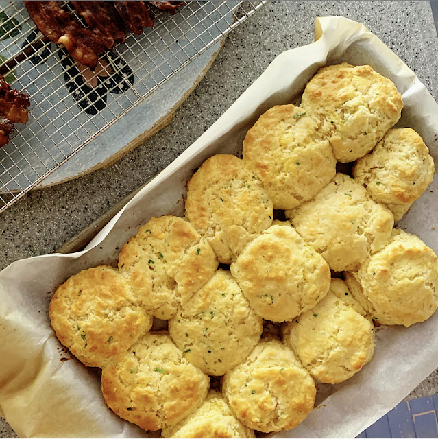 One of my favorite breakfasts as a child was my grandma's Cheddar Biscuits. We would watch them puff until golden and slice them open and eat them with a slice of sharp cheddar, crisp bacon and a fried egg. The heat from the biscuit melted the cheddar and the golden yolks were better than butter over it all. It is one of the most simple and elegant breakfast we had on the farm.