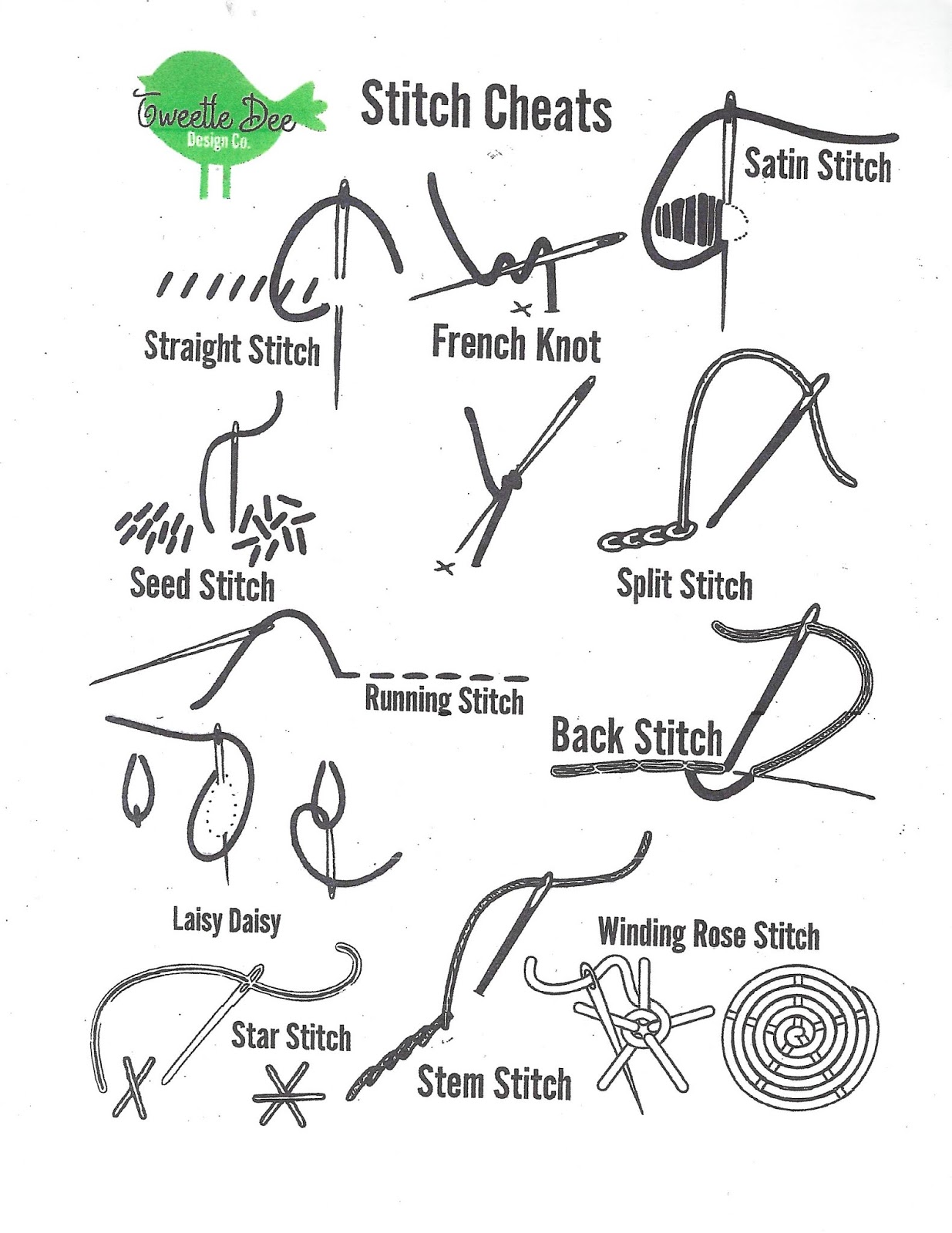 3. Take your green and thread your crewel needle with all six strands of floss about an arms length of floss. Tie a knot in the end and make a tail about 1/3 the length of your floss. This helps you to hold onto your floss as you go through the fabric.