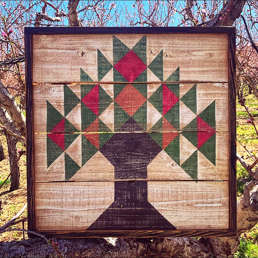 The buds are popping out in all of the orchards around our mountain community with bright swatch paths of pink, peach and red. We are so excited to release our newest original barn quilt design, The Orchard Tree.