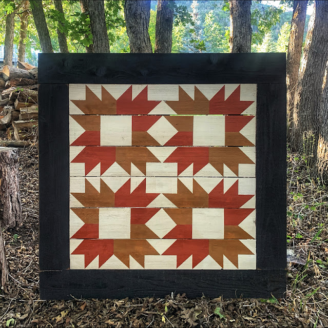 For my barn quilt addict friends who like to paint your own barn quilts, we have a large kit for this design. The kit measures 33" square with the frame attached. All the paints and brushes are included. We also released the pattern this fall so you can paint this design now. The pattern is available in a shippable paper format or as a PDF download.