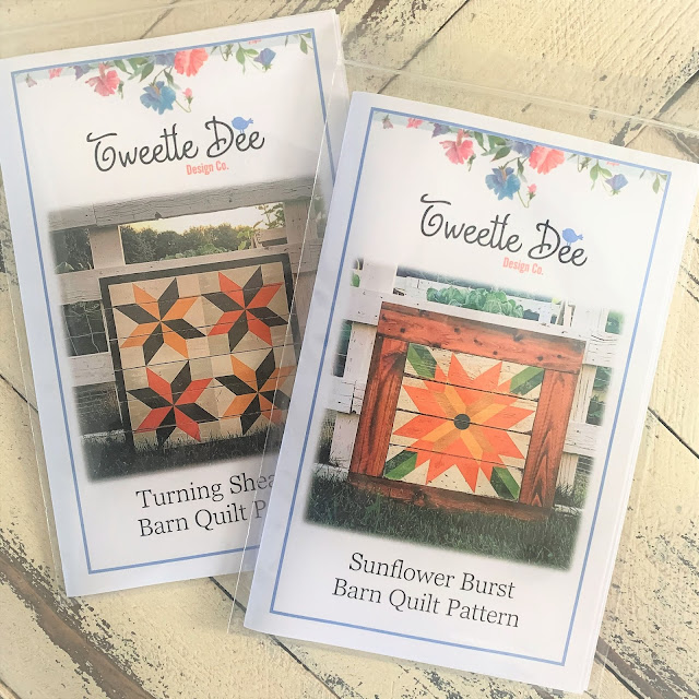 Two new fall barn quilt patterns have hitthe shoptoday! The Turning Sheathes and Sunflower Burst Barn Quilts are available in time for you to make your own fall barn quilts.
